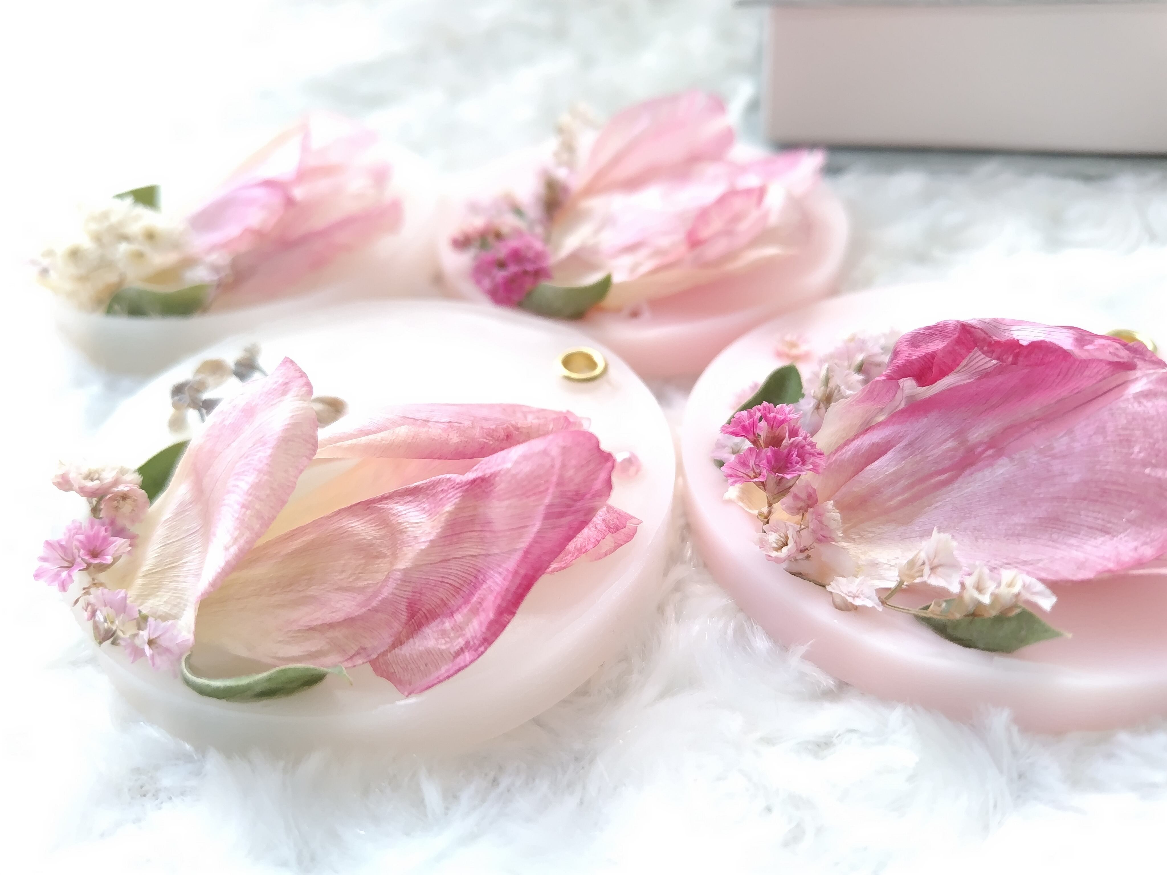 手作りのドライフラワーにナチュラルなチューリップのドライフラワーがふんわり装い、リラックス効果をもたらします。